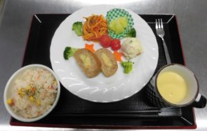 咲くらでのお昼ご飯 2020年02月17日【お知らせ | スタッフ日記】 こんにちは。 今日は、咲くらでの昼食を少し紹介させて頂きます。 メインのみ紹介します。 左上:ピーマンの肉詰め 上:かれいの煮付け 左:チキンのトマト煮 です。 こちらはクリスマスの日の料理です。 どれもおいしいですよ。