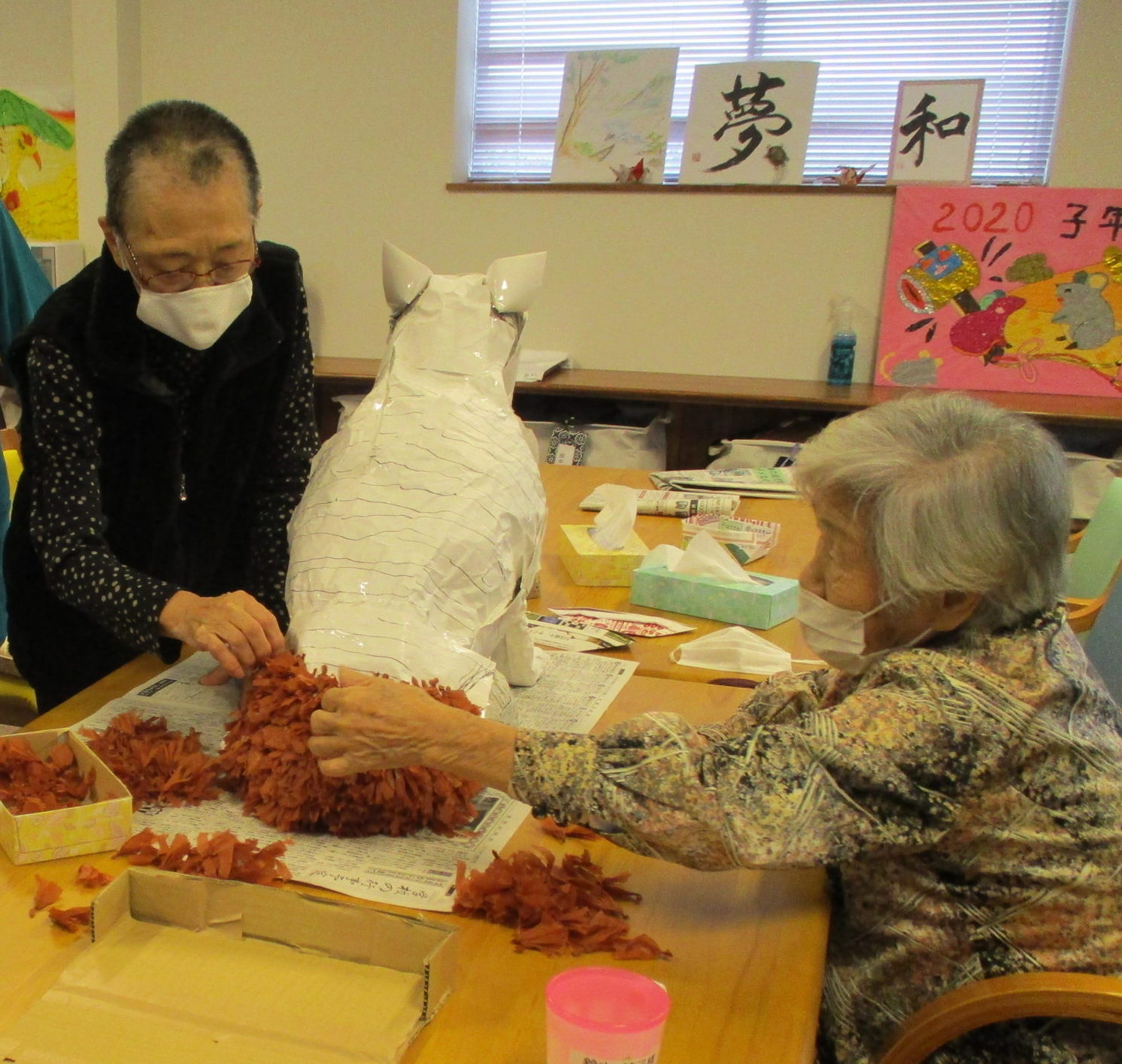 来年の干支作り 2020年12月14日【お知らせ | スタッフ日記】 来年は丑年ですね。 咲くらでは、貼り絵をしてかわいい牛をつくってもらっています。 完成がたのしみです。どんな牛さんができるかはお楽しみです。
