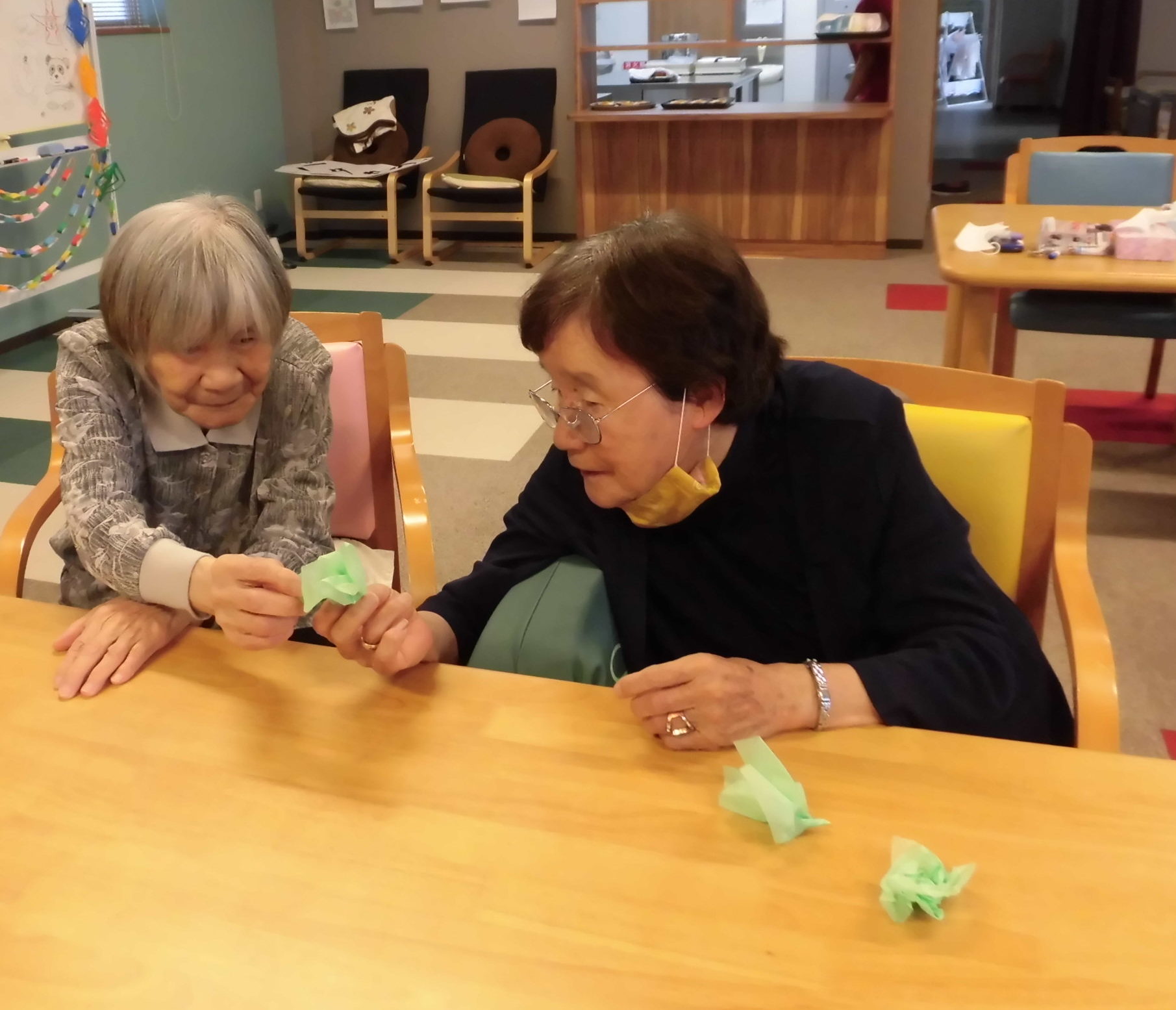 レクリエーションの一つとして皆さんにバラを作って頂きました。